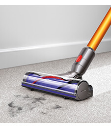 Direct-drive cleaner head drives bristles deeper into the carpet to remove even more dirt. 150% more brush bar power than the Dyson V6 HEPA vacuum.