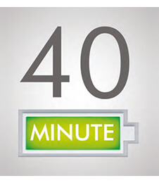 Dyson V8 is powered by a Nickel-Cobalt-Aluminium battery to delivery up to 40 minutes of fade free suction. (up to 25 minutes with motorised floor tool attached)
