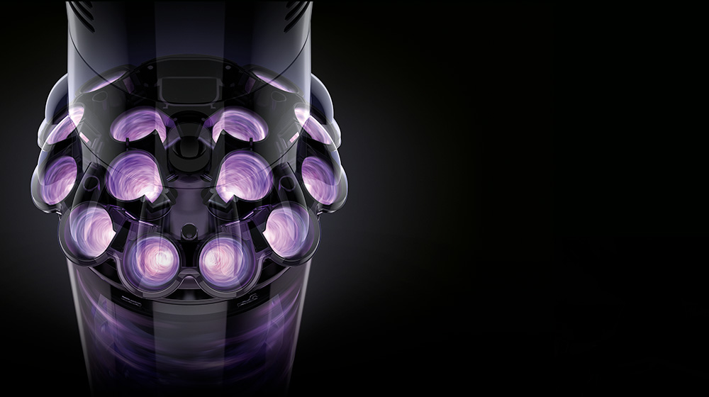 The Dyson Cyclone V10™ vacuum’s lithium-ion battery has one more cell than the Dyson V8™ vacuum, to run at a higher voltage and create more power. But because each of the seven high-capacity, nickel-cobalt-aluminium cathodes is slightly smaller, there’s no additional weight. Innate LED system diagnostics and altitude sensors enable the machine to automatically optimise power to the cleaner head at all times.
